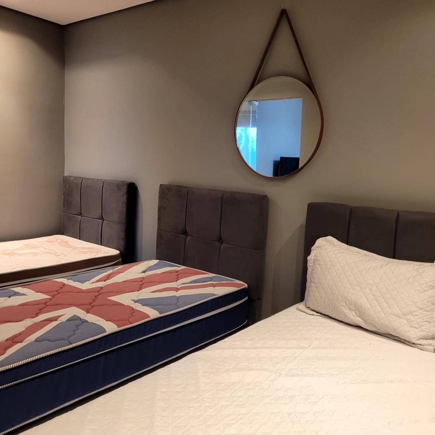 Há também uma cozinha equipada com um frigorífico e placa de fogão em algumas unidades.