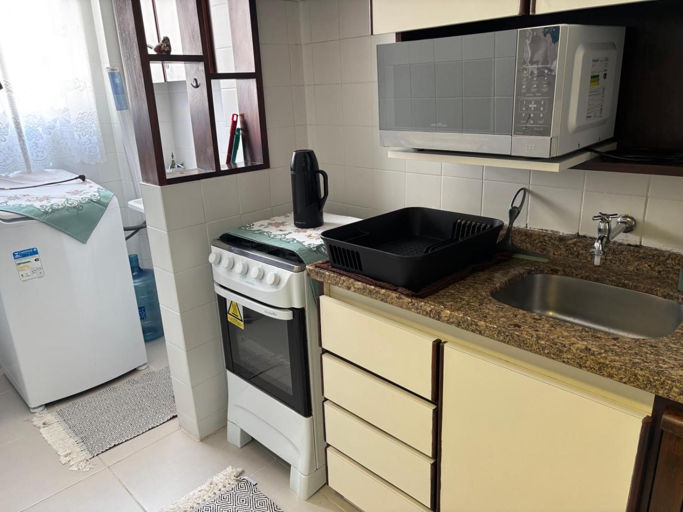 Apartamento com 1 Quarto. The well-equipped kitchen features a stovetop, a refrigerator, an oven and a microwave. The air-conditioned apartment provides a flat-screen TV, a washing machine, a tea and coffee maker, a wardrobe as well as a quiet street view. The unit offers 1 bed and 1 futon.