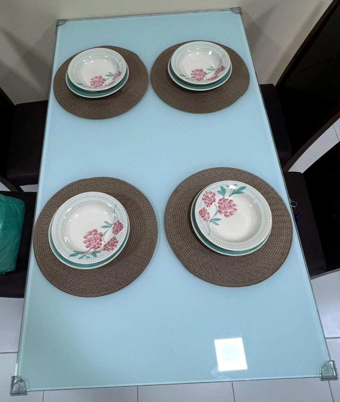 Todos os pratos, talheres, copos e outros artigos de mesa foram higienizados