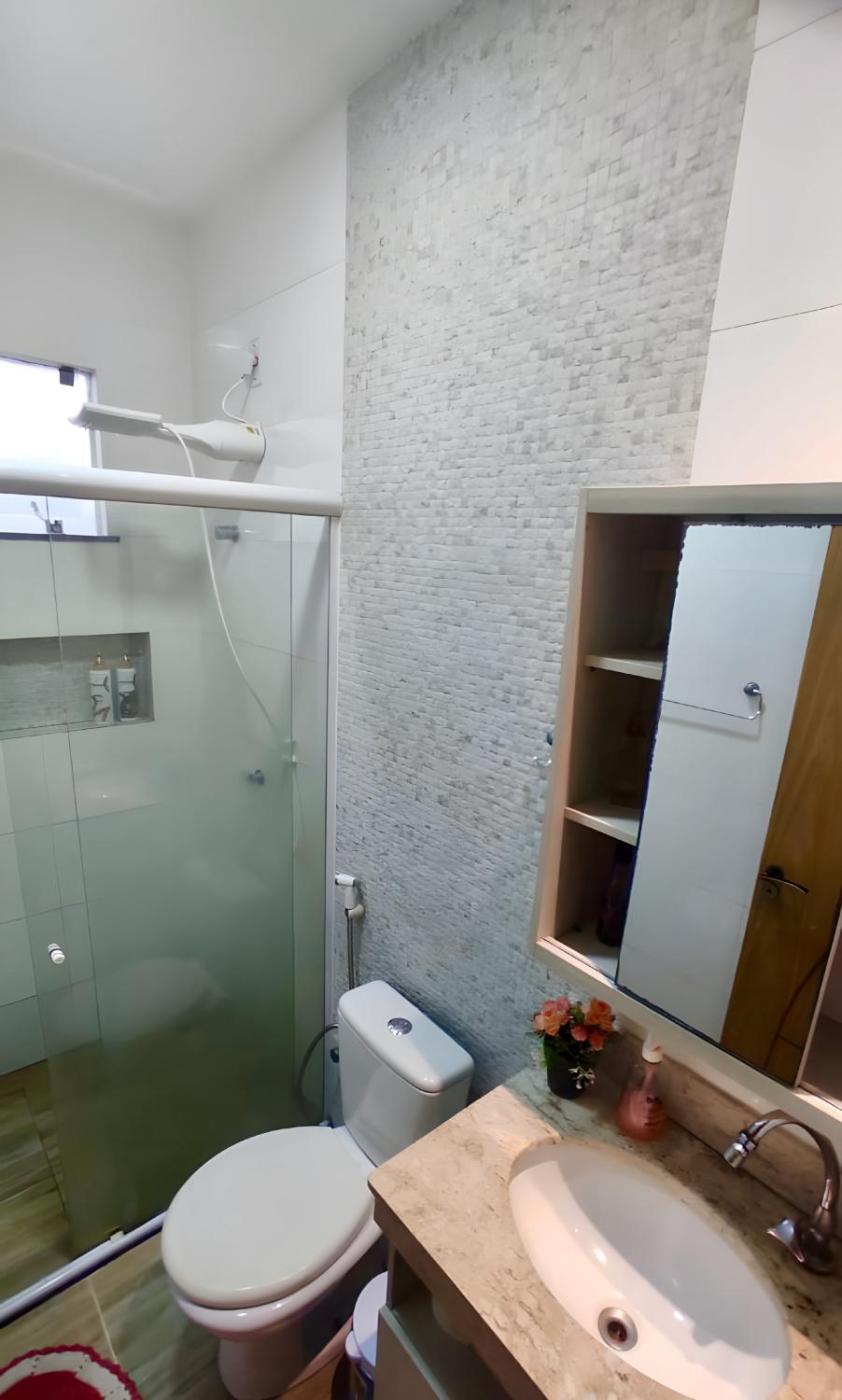 Casa com 3 Quartos. The spacious holiday home has 3 bedrooms and 3 bathrooms with a shower and free toiletries. The well-fitted kitchen features a stovetop, a refrigerator, kitchenware and an oven. This air-conditioned holiday home comes with a dining area, a flat-screen TV with streaming services a washing machine and a patio. The unit has 5 beds.