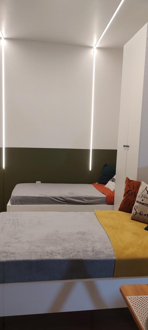 Quarto Triplo Conforto com Chuveiro. The spacious triple room provides air conditioning and a private entrance, as well as a private bathroom featuring a shower. The triple rooms kitchenette, which has a stovetop and a microwave, is available for cooking and storing food. This triple room features a wardrobe, heating, flat-screen TV, as well as chocolate for guests.
