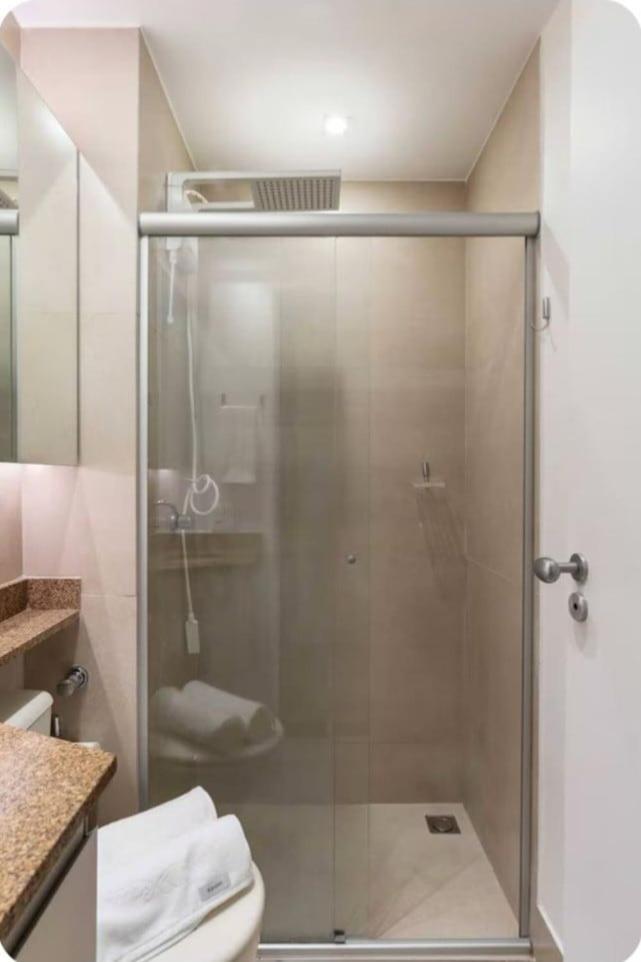 Apartamento com 1 Quarto. The fully equipped kitchenette has a stovetop, a refrigerator, kitchenware and a microwave. The apartment features air conditioning, a washing machine, a tea and coffee maker, a dining area and a flat-screen TV. The unit has 1 bed.