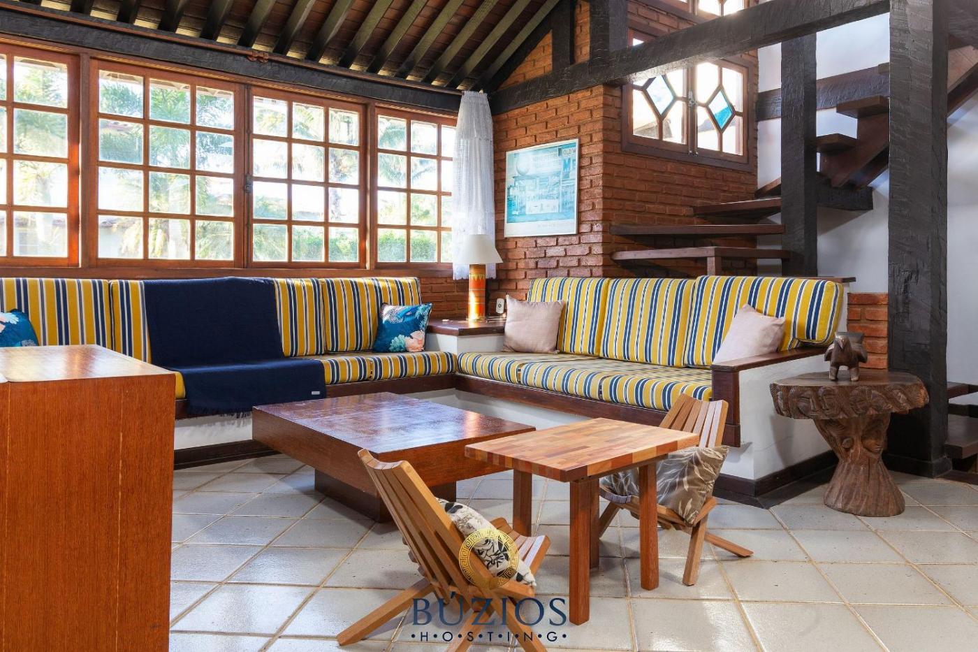 Em Búzios, a 4 minutos a pé de Praia de Manguinhos, BZ46 Na quadra da praia! Casa c 5 suítes dispõe de acomodações com um jardim, acesso Wi-Fi gratuito, um salão partilhado e uma receção aberta 24 horas. Os hóspedes têm acesso a um terraço.