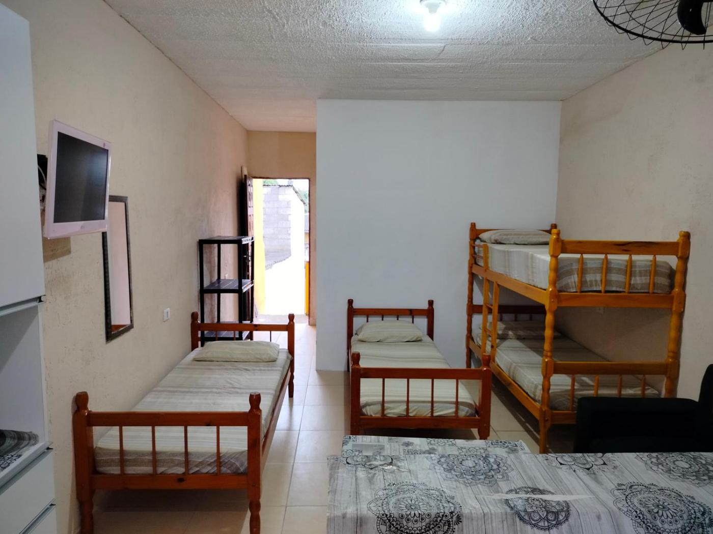 Casa de Férias. This holiday home is comprised of 1 living room, 1 separate bedroom and 1 bathroom with a shower. The well-fitted kitchen features a stovetop, a refrigerator, kitchenware and a microwave. This holiday home offers a sofa and a flat-screen TV. The unit offers 9 beds. ;