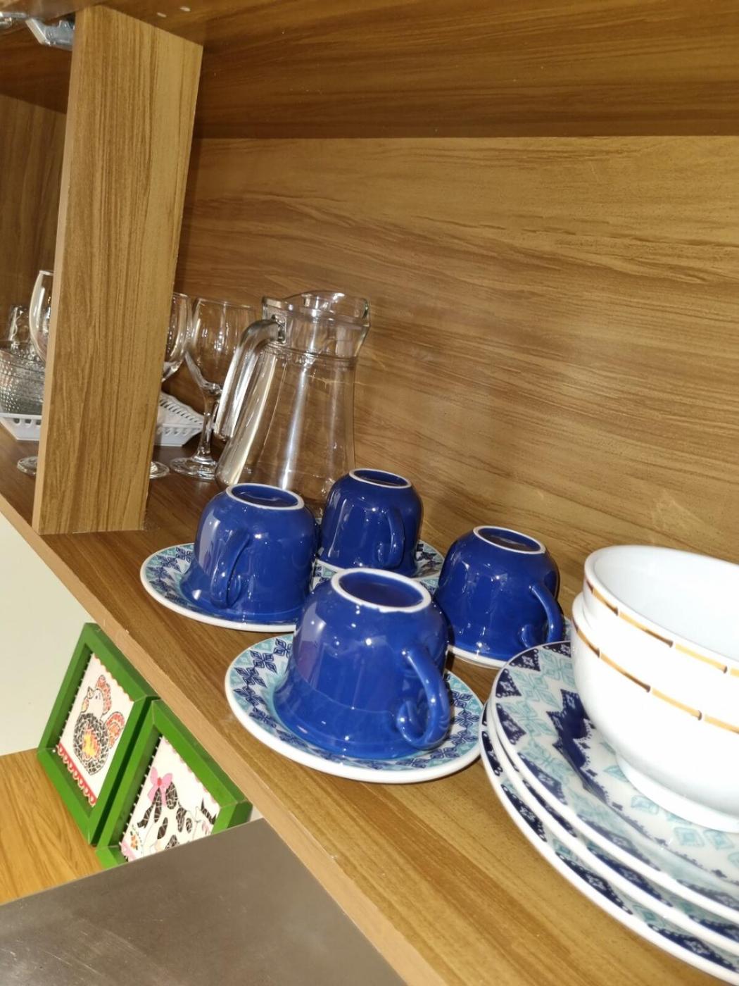 Todos os pratos, talheres, copos e outros artigos de mesa foram higienizados