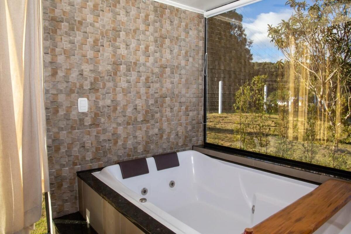 Chalé com 2 Quartos. This luxurious chalet provides a hot tub, a spa bath and a fireplace. Guests will find a stovetop, a refrigerator, kitchenware and an oven in the well-fitted kitchen. The chalet also has a barbecue. The spacious air-conditioned chalet offers a flat-screen TV with streaming services, a private entrance, a tea and coffee maker, a seating area as well as garden views. The unit offers 2 beds.