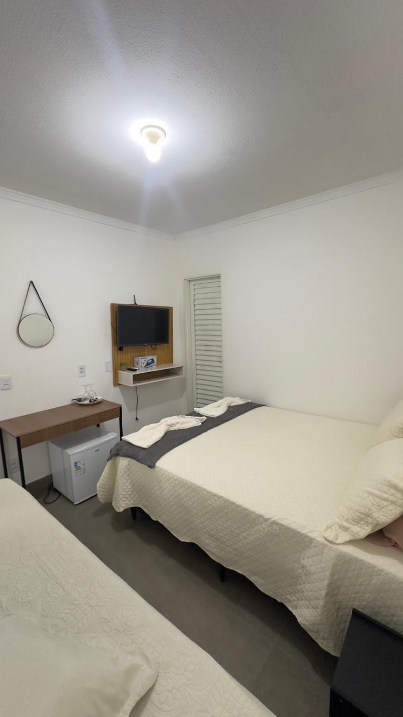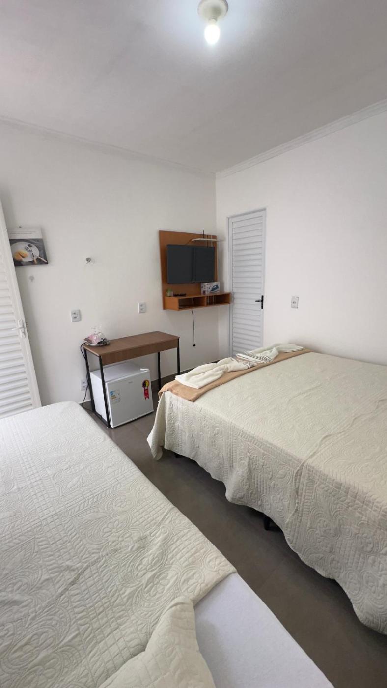 Quarto Triplo. The triple rooms kitchen, which has a stovetop and a refrigerator, is available for cooking and storing food. The triple room offers air conditioning, as well as a private bathroom boasting a shower. The unit has 2 beds. ;