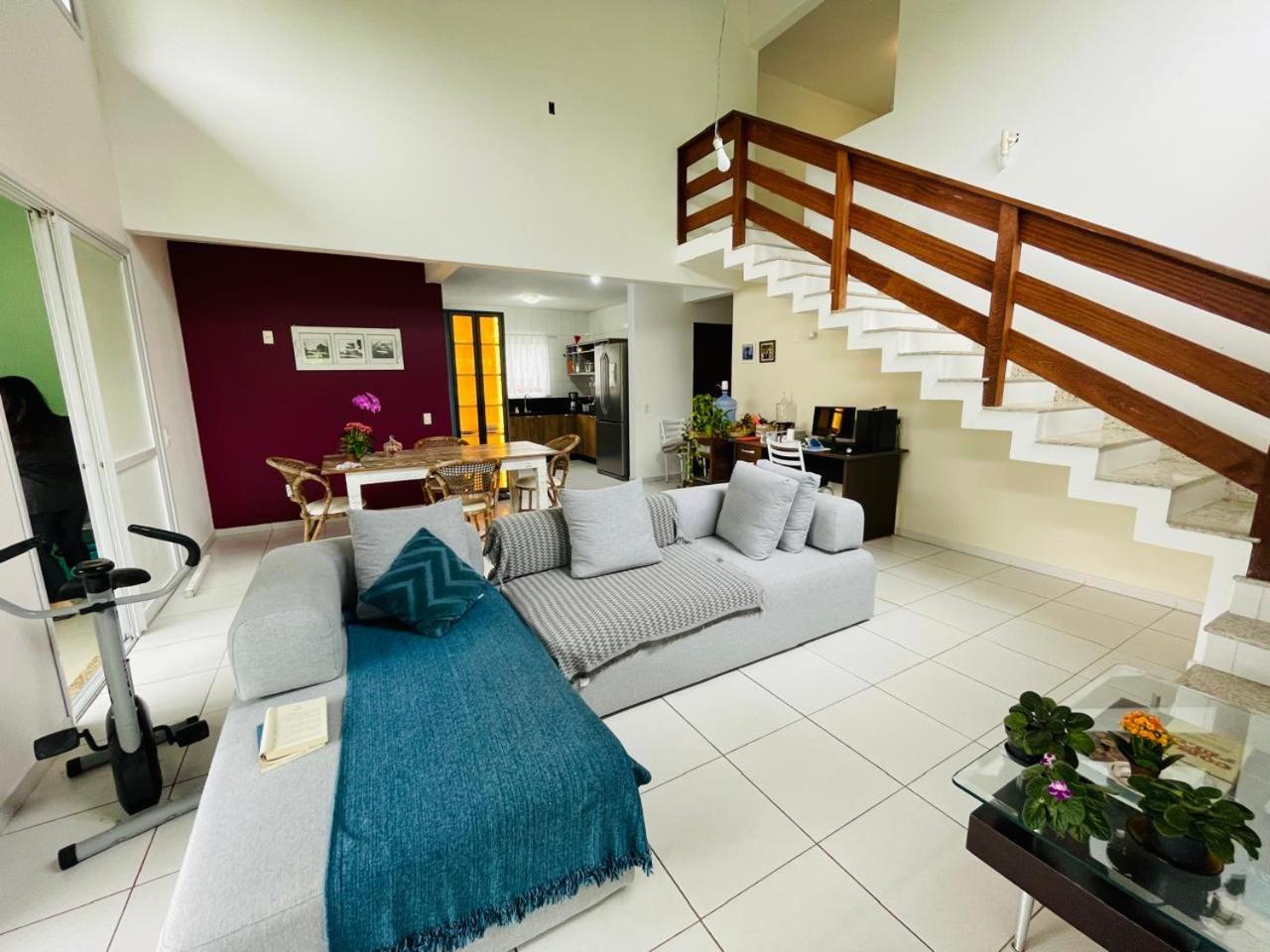Casa com 3 Quartos. The holiday homes kitchen is available for cooking and storing food. The spacious holiday home provides air conditioning, a washing machine and garden views. The unit offers 2 beds.