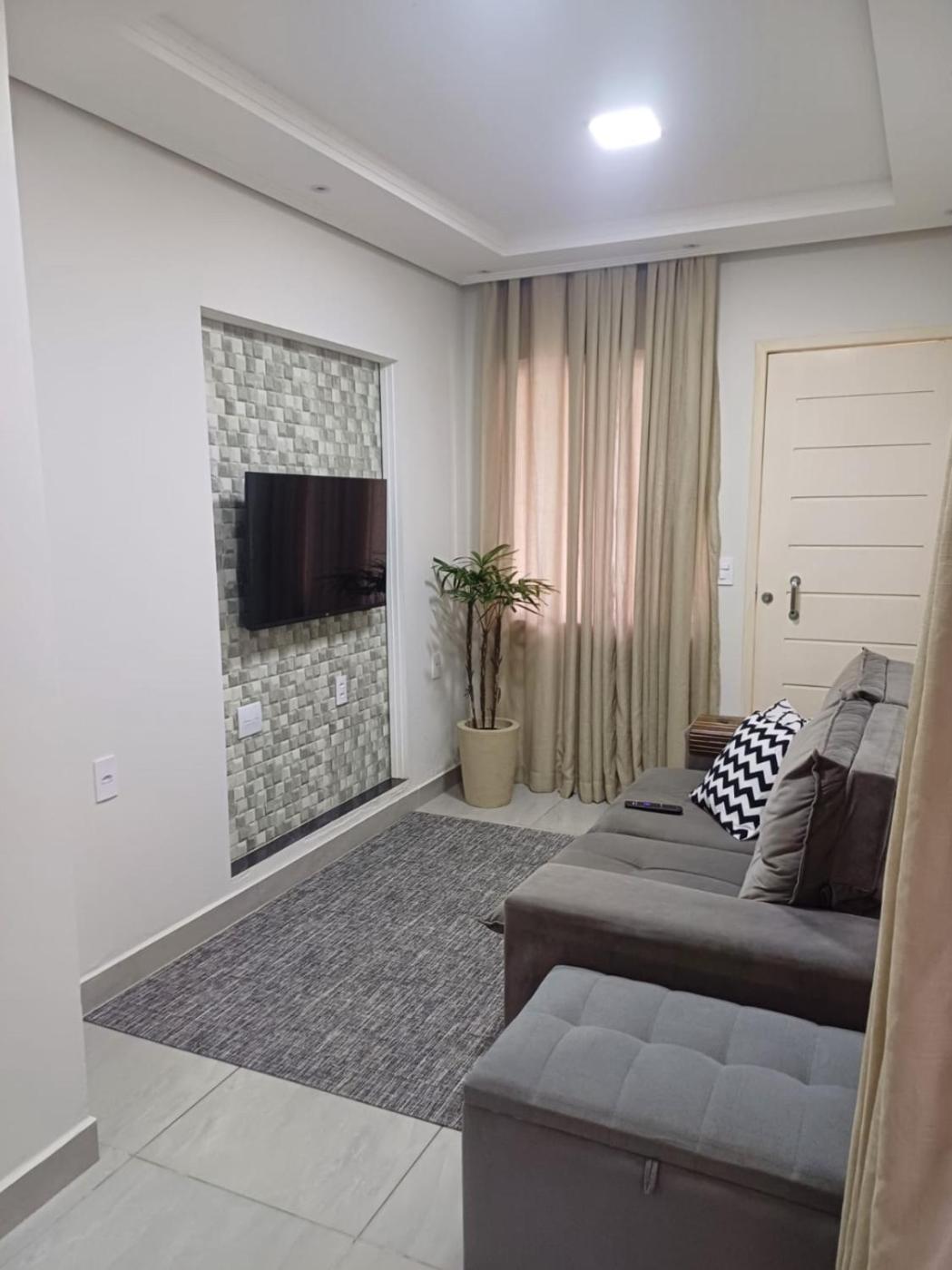 Casa com 2 Quartos. The holiday homes kitchen, which features kitchenware, is available for cooking and storing food. The holiday home provides air conditioning, a washing machine, a wardrobe, a sofa, as well as a flat-screen TV. The unit offers 4 beds.