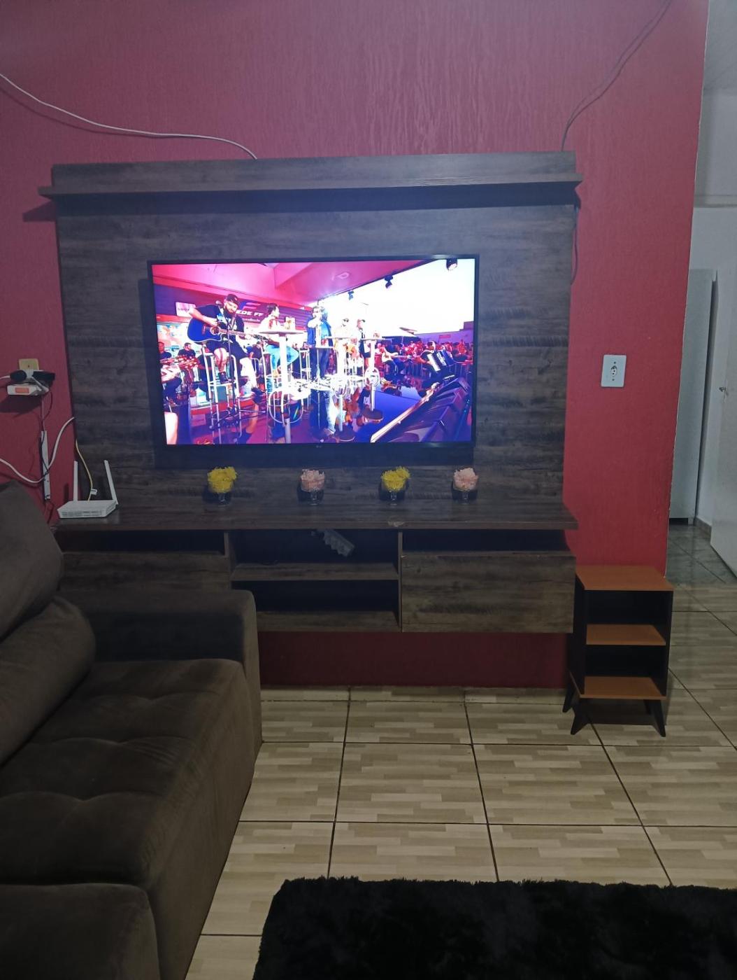Casa com 2 Quartos. The well-fitted kitchen features a stovetop, a refrigerator, kitchenware and an oven. This air-conditioned holiday home comprises a dining area, a flat-screen TV with streaming services a washing machine and a balcony. The unit offers 4 beds.