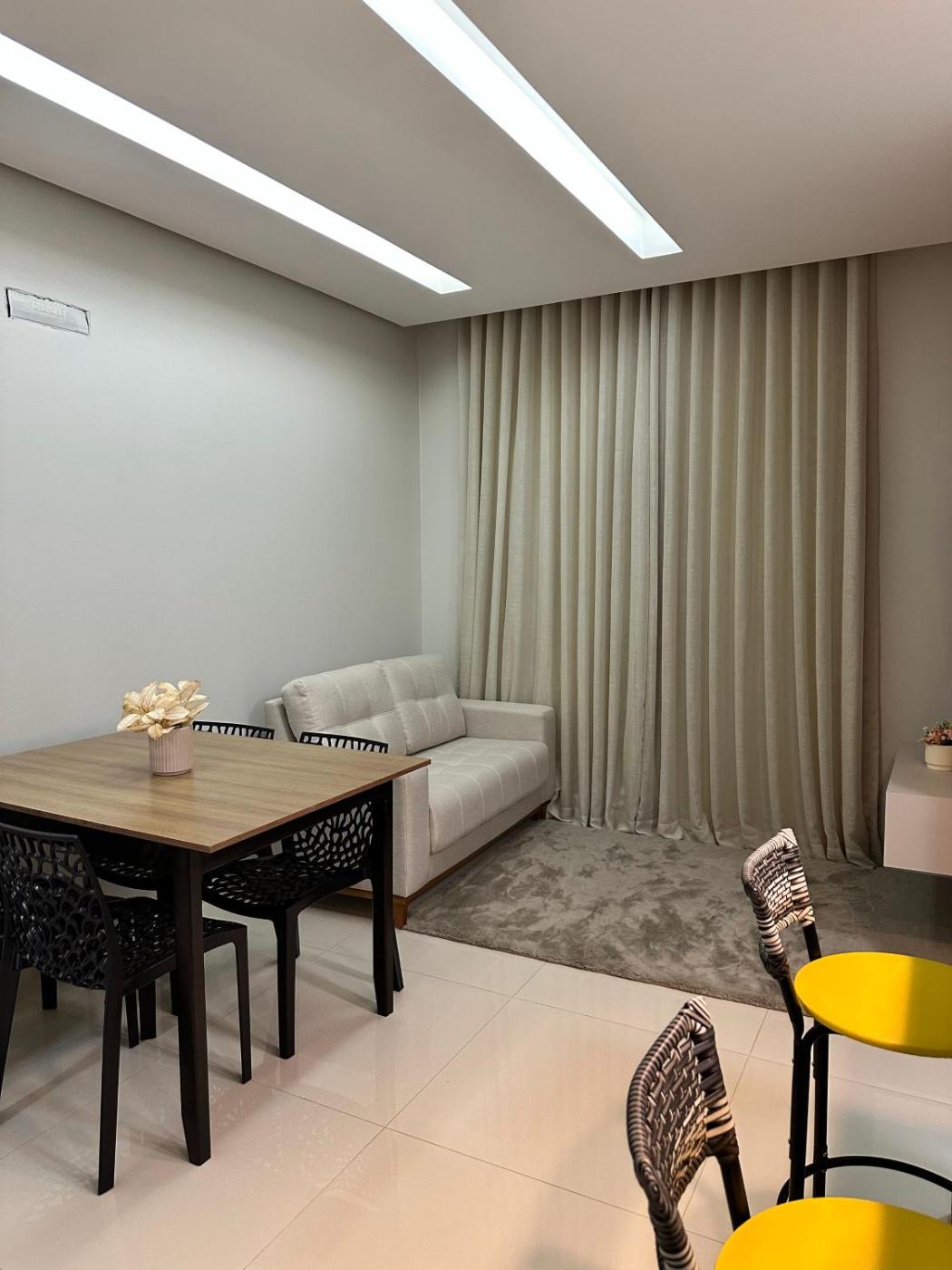 Apartamento Deluxe com 2 Quartos. The air-conditioned apartment features 2 bedrooms, 1 bathroom with a shower and a kitchen. The well-fitted kitchen has a stovetop, a refrigerator, kitchenware and a microwave. The apartment provides a tea and coffee maker, a dining area, a wardrobe, a sofa and a flat-screen TV. The unit offers 2 beds.