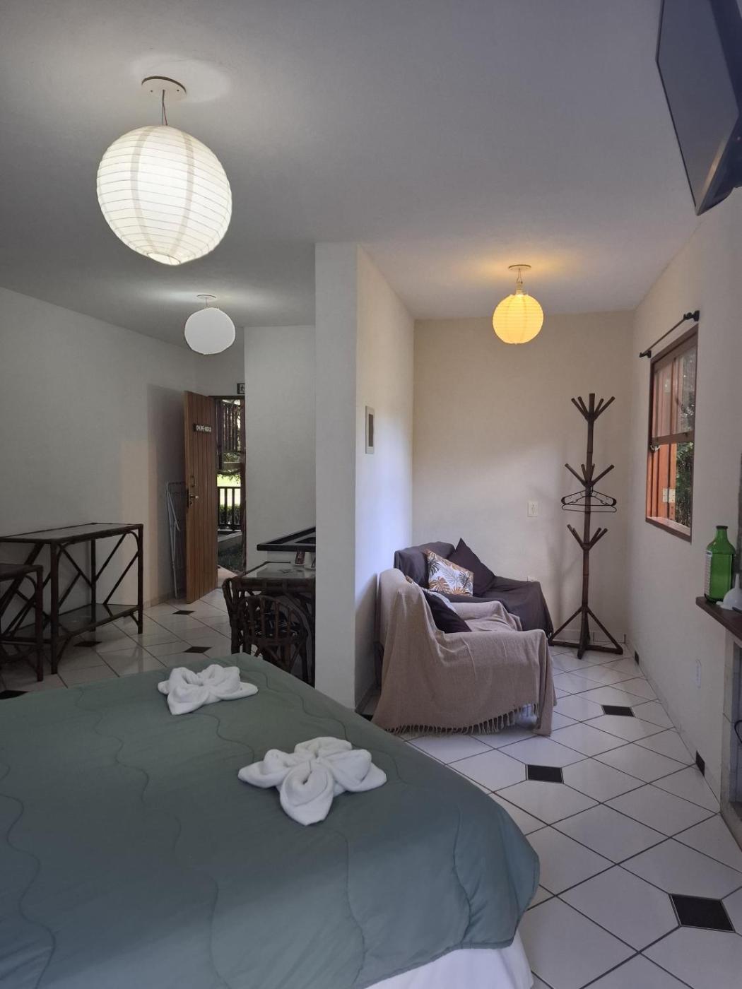 Quarto Quádruplo Conforto. This quadruple rooms special feature is the fireplace. The quadruple rooms kitchenette, which features kitchenware and a microwave, is available for cooking and storing food. This quadruple room includes a flat-screen TV with streaming services, a private bathroom as well as a balcony with garden views. The unit offers 3 beds.