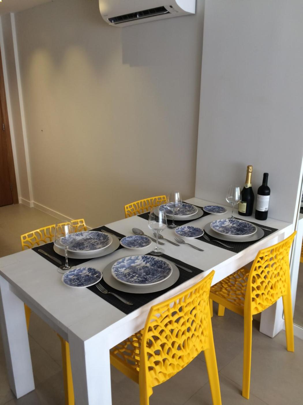 Todos os pratos, talheres, copos e outros artigos de mesa foram higienizados