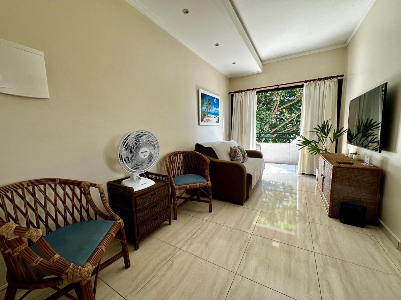 Apartamento com 1 Quarto. This air-conditioned apartment consists of 1 living room, 1 separate bedroom and 1 bathroom with a shower. Guests can make meals in the kitchen that is equipped with a stovetop, a refrigerator, kitchenware and an oven. Featuring a balcony with garden views, this apartment also provides a tea and coffee maker and a flat-screen TV with streaming services. The unit offers 3 beds.