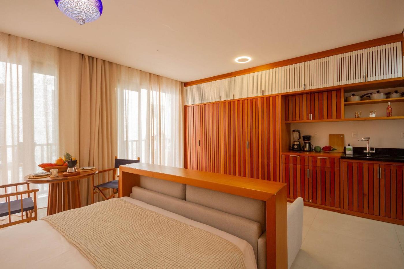 Apartamento Premium com 1 Quarto. Boasting a private entrance, this air-conditioned apartment comes with 1 bedroom, 1 bathroom and a living room. The well-fitted kitchen has a stovetop, a refrigerator and kitchenware. Featuring a balcony, this apartment also features a coffee machine, a seating area and a TV. The unit has 2 beds.