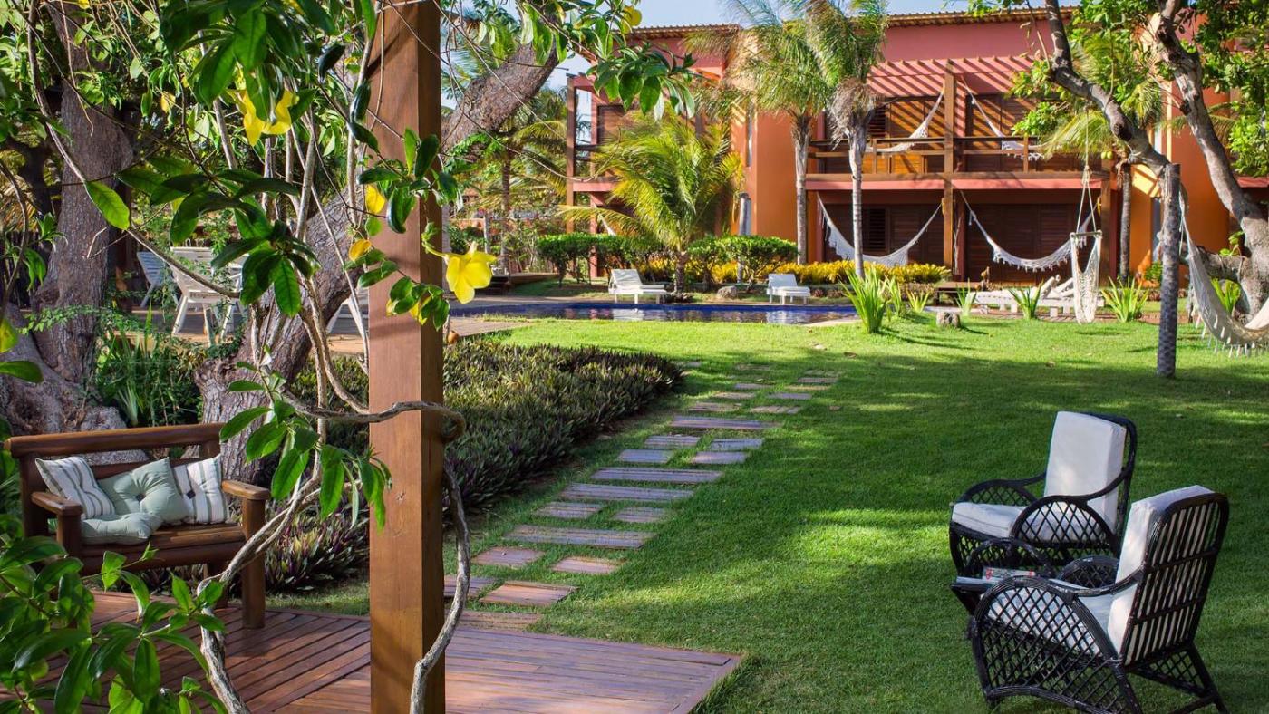 O riacho cria uma atmosfera única e percorre toda a área do jardim, mesmo em frente a cada quarto.