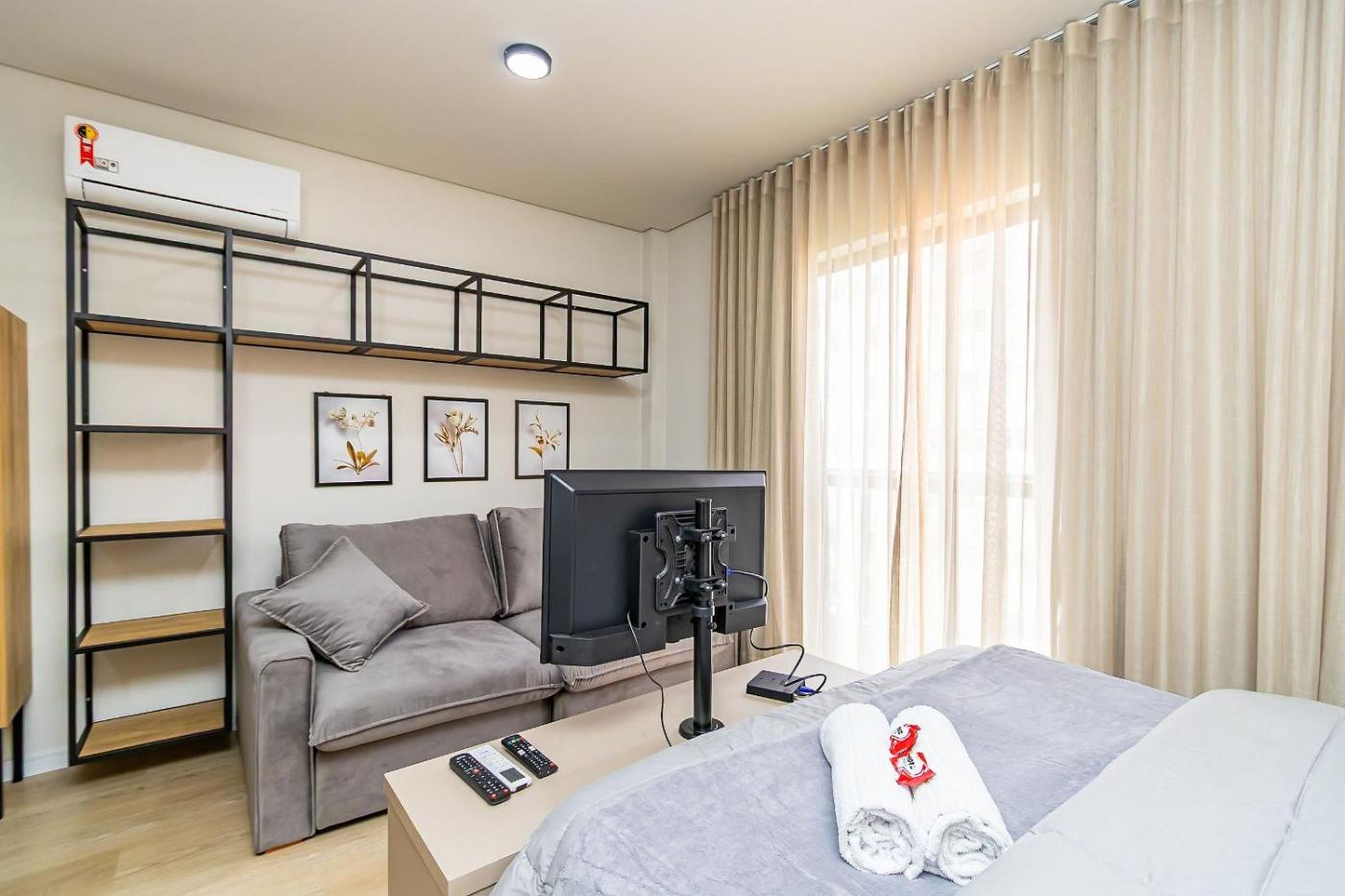 Estúdio Standard. The studio features air conditioning, a private entrance, a balcony with city views as well as a private bathroom boasting a hairdryer. The unit has 2 beds.