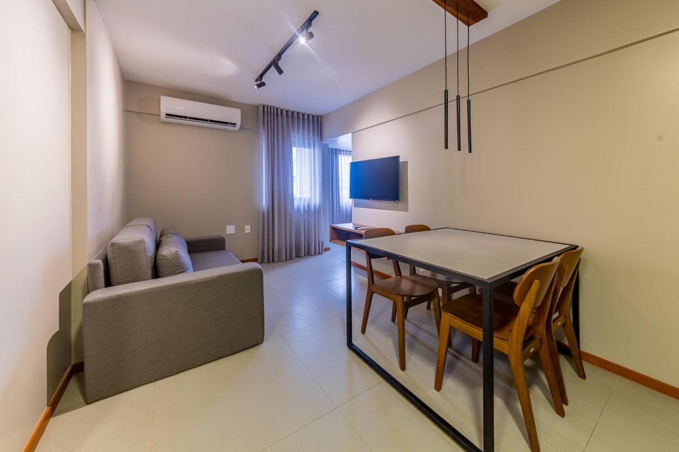 Apartamento com 1 Quarto. This air-conditioned apartment consists of 1 living room, 1 separate bedroom and 1 bathroom with a shower. The apartments kitchen is available for cooking and storing food. This apartment features a seating area, a sofa and a flat-screen TV. The unit offers 2 beds.