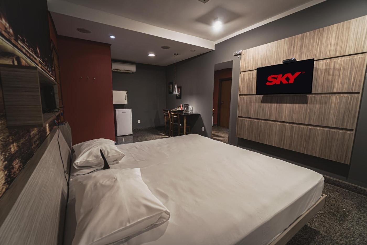 Suite com Banheira de Hidromassagem. Featuring a private entrance, this air-conditioned suite is comprised of 1 bedroom and 1 bathroom with a walk-in shower and a bath. This suite features soundproof walls, a minibar, flat-screen TV with cable channels, as well as winechampagne for guests. The unit offers 1 bed. ;