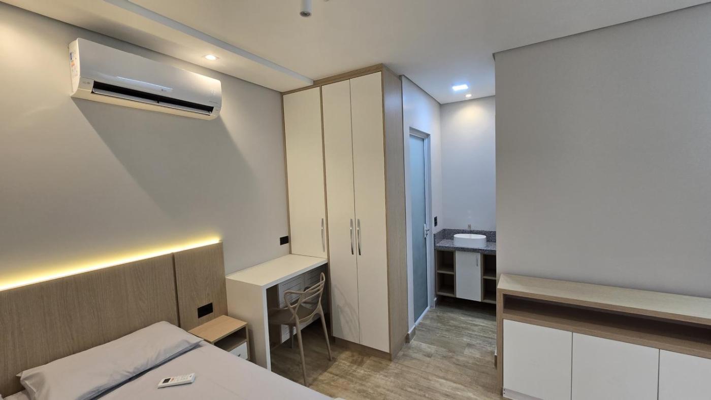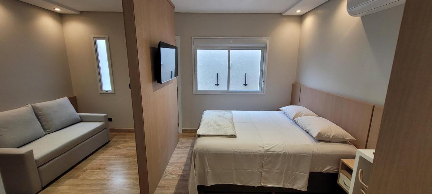 Estúdio Queen Deluxe. Meals can be prepared in the kitchen, which has a stovetop, a refrigerator, an oven and a microwave. This air-conditioned studio is comprised of a flat-screen TV with streaming services and a private bathroom. The unit has 2 beds.