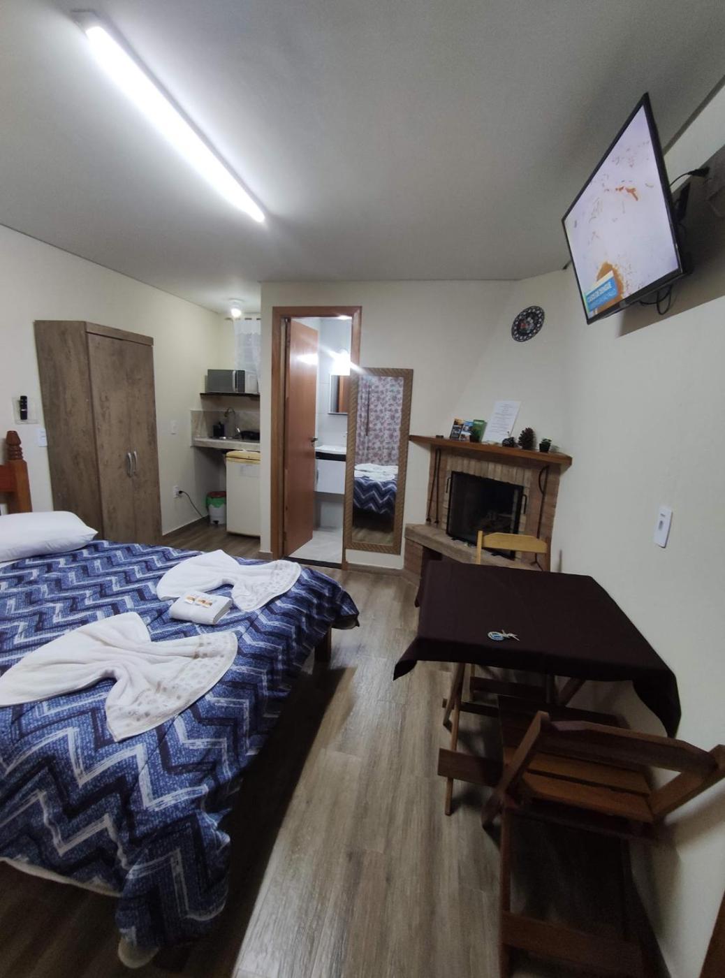 Chalé com 1 Quarto. This chalets special feature is the fireplace. Featuring a private entrance, this chalet also consists of 1 separate bedroom and 1 bathroom with a walk-in shower and a hairdryer. Boasting a balcony with a quiet street view, this chalet also provides a minibar and a flat-screen TV with cable channels. The unit offers 1 bed. ;