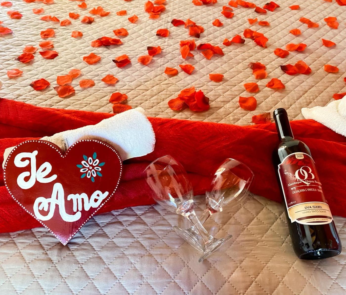 Chalé com 2 Quartos. Guests will have a special experience as the chalet offers a fireplace. Featuring a private entrance, this spacious chalet also consists of 1 living room, 2 separate bedrooms and 1 bathroom with a walk-in shower. The chalets kitchen, which features a stovetop and kitchenware, is available for cooking and storing food. Boasting a terrace with garden views, this chalet also provides a minibar and a flat-screen TV with streaming services. The unit offers 3 beds. ;