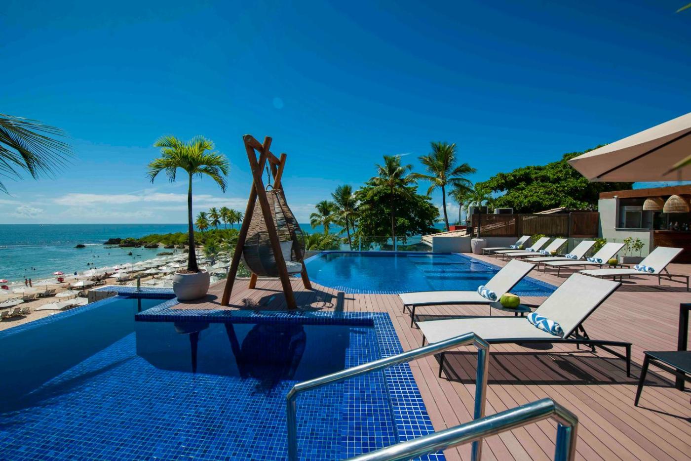 Quarto Duplo Deluxe com Vista Mar e Piscina Privada. The private pool is a top feature of this suite. The air-conditioned suite has 1 bedroom and 1 bathroom with a shower and a hairdryer. The suite features a minibar, a wardrobe, a safe deposit box, a flat-screen TV, as well as sea views. The unit has 1 bed. ;