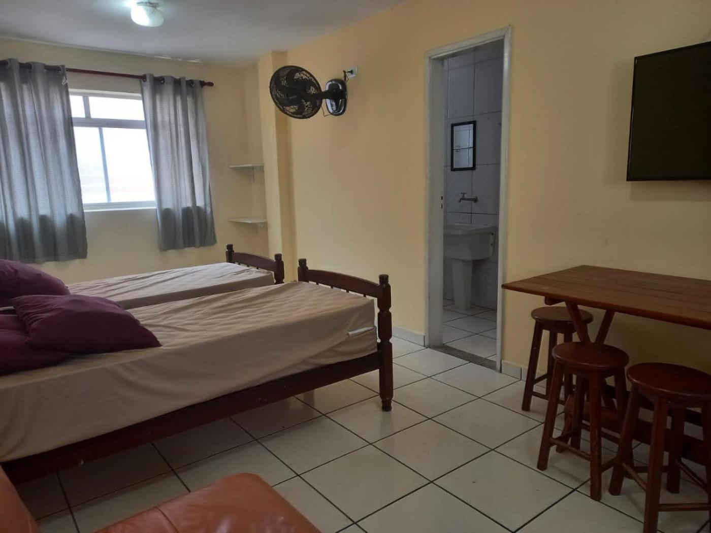 Apartamento Estúdio. This apartment is comprised of 1 bedroom, a kitchen and 1 bathroom with a shower. A kitchen equipped with a stovetop, a refrigerator and kitchenware is available for cooking and storing food. The apartment is fitted with a flat-screen TV, a dining area, a sofa, as well as a tiled floor. The unit offers 3 beds.