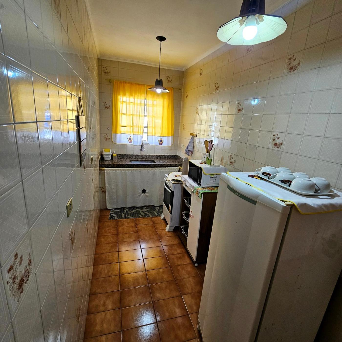 Apartamento. This apartment is comprised of 1 living room, 1 separate bedroom and 1 bathroom with a shower. In the kitchen, guests will find a stovetop, a refrigerator, kitchenware and an oven. The apartment features tiled floors, a seating area with a TV, a dining area, a wardrobe, as well as a sofa. The unit offers 5 beds.