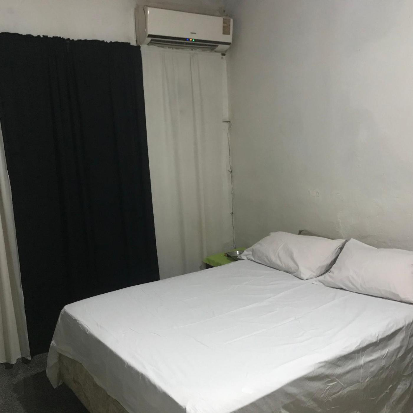 Quarto Duplo com Casa de Banho Privativa. Este quarto com cama de casal apresenta ar condicionado, um roupeiro e uma casa de banho privativa com chuveiro. A unidade tem 1 cama.