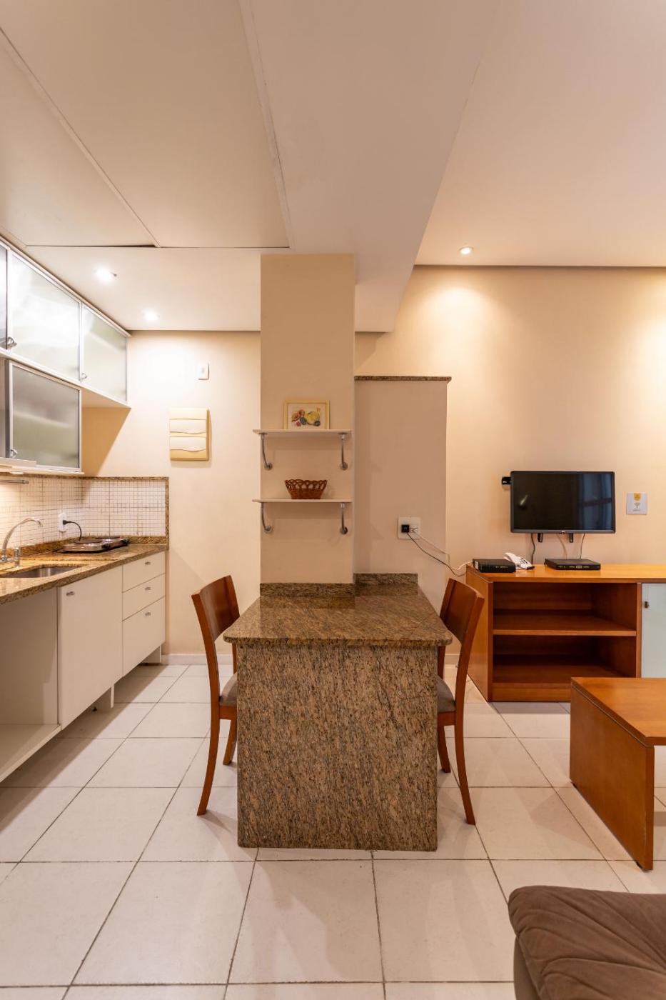 Apartamento de 1 Quarto com Varanda. Featuring a private entrance, this air-conditioned apartment comprises a kitchen, 1 bedroom and 1 bathroom with a shower and a bidet. The fully equipped kitchen features a stovetop, a refrigerator, kitchenware and an oven. This apartment has a tea and coffee maker, a seating area, a TV with cable channels and a balcony. The unit offers 1 bed.