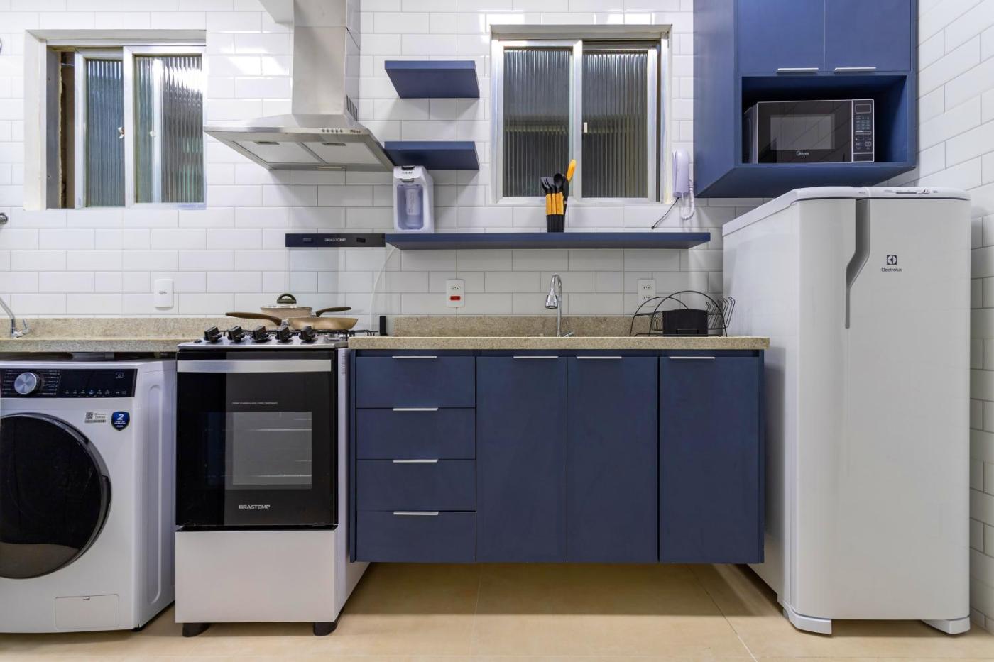Apartamento com 1 Quarto. The air-conditioned apartment features 1 bedroom, 1 bathroom with a hairdryer and a kitchen. Guests can make meals in the kitchen that comes with a stovetop, a refrigerator, kitchenware and an oven. The apartment provides a flat-screen TV, a washing machine, a dining area, a wardrobe as well as city views. The unit offers 1 bed.