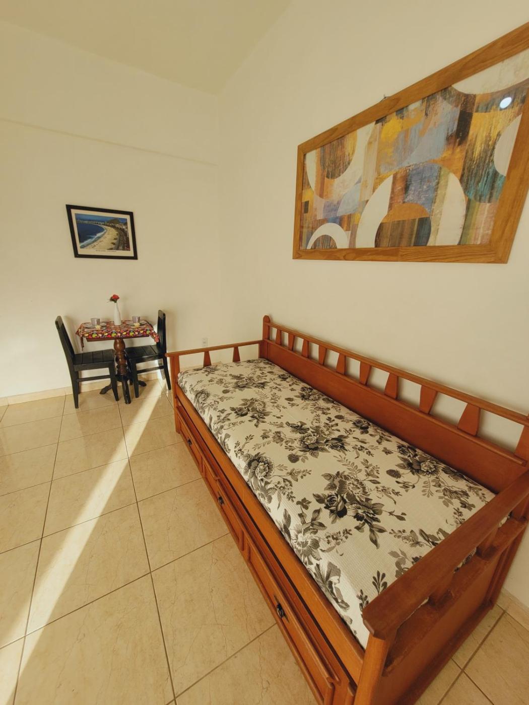 Apartamento com 1 Quarto. This air-conditioned apartment is comprised of 1 living room, 1 separate bedroom and 1 bathroom with a walk-in shower. The well-fitted kitchen features a stovetop, a refrigerator, kitchenware and a microwave. This apartment has a dining area, a wardrobe, a flat-screen TV with cable channels and city views. The unit offers 3 beds.