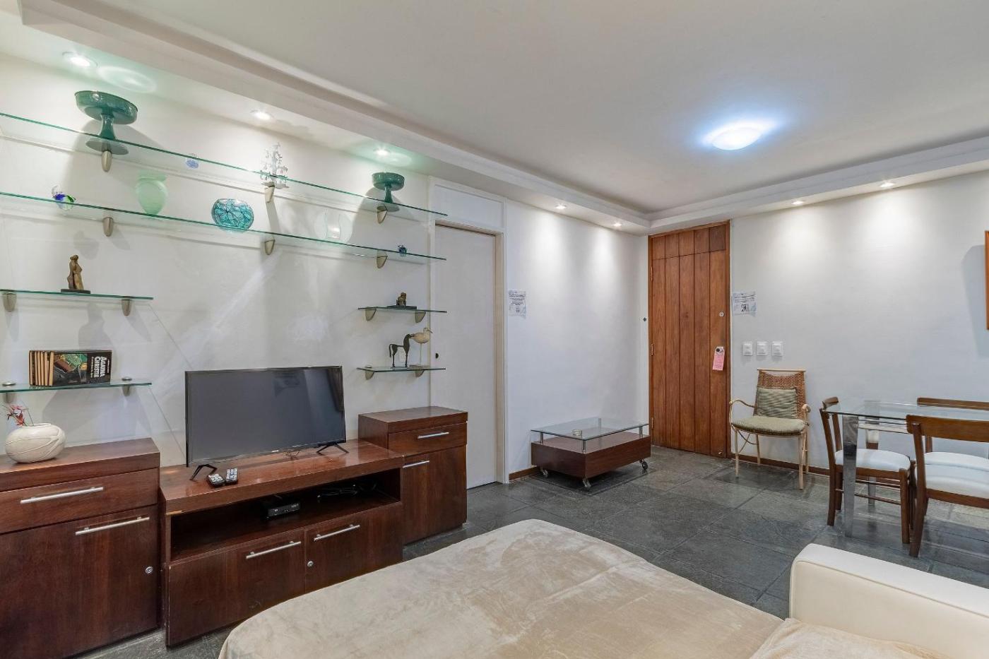 Apartamento de 1 Quarto com Varanda. Guests will have a special experience as the apartment provides a rooftop pool. This air-conditioned apartment features 1 bedroom, 1 bathroom and a living room with seating and dining areas. In the kitchen, guests will find a stovetop, a refrigerator, kitchenware and a microwave. This apartment has a washing machine, a coffee machine, a TV and a balcony. The unit offers 2 beds.