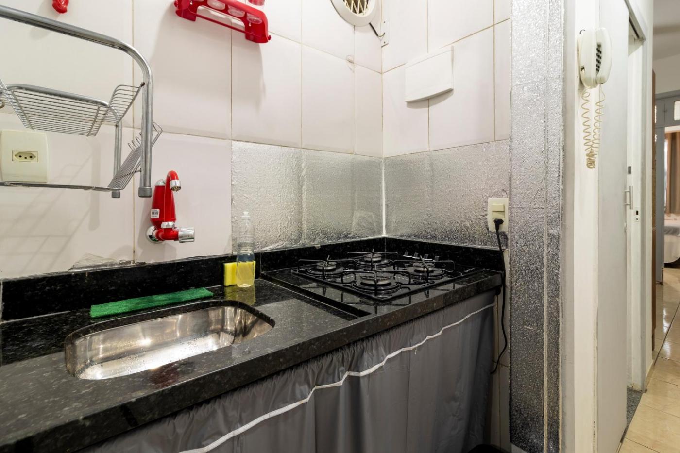 Apartamento com 1 Quarto. This air-conditioned apartment includes 1 living room, 1 separate bedroom and 1 bathroom with a bath or a shower. Guests can make meals in the kitchen that is fitted with a stovetop, a refrigerator, kitchenware and a microwave. The apartment offers a flat-screen TV, a washing machine, a coffee machine, a seating area as well as city views. The unit has 2 beds.