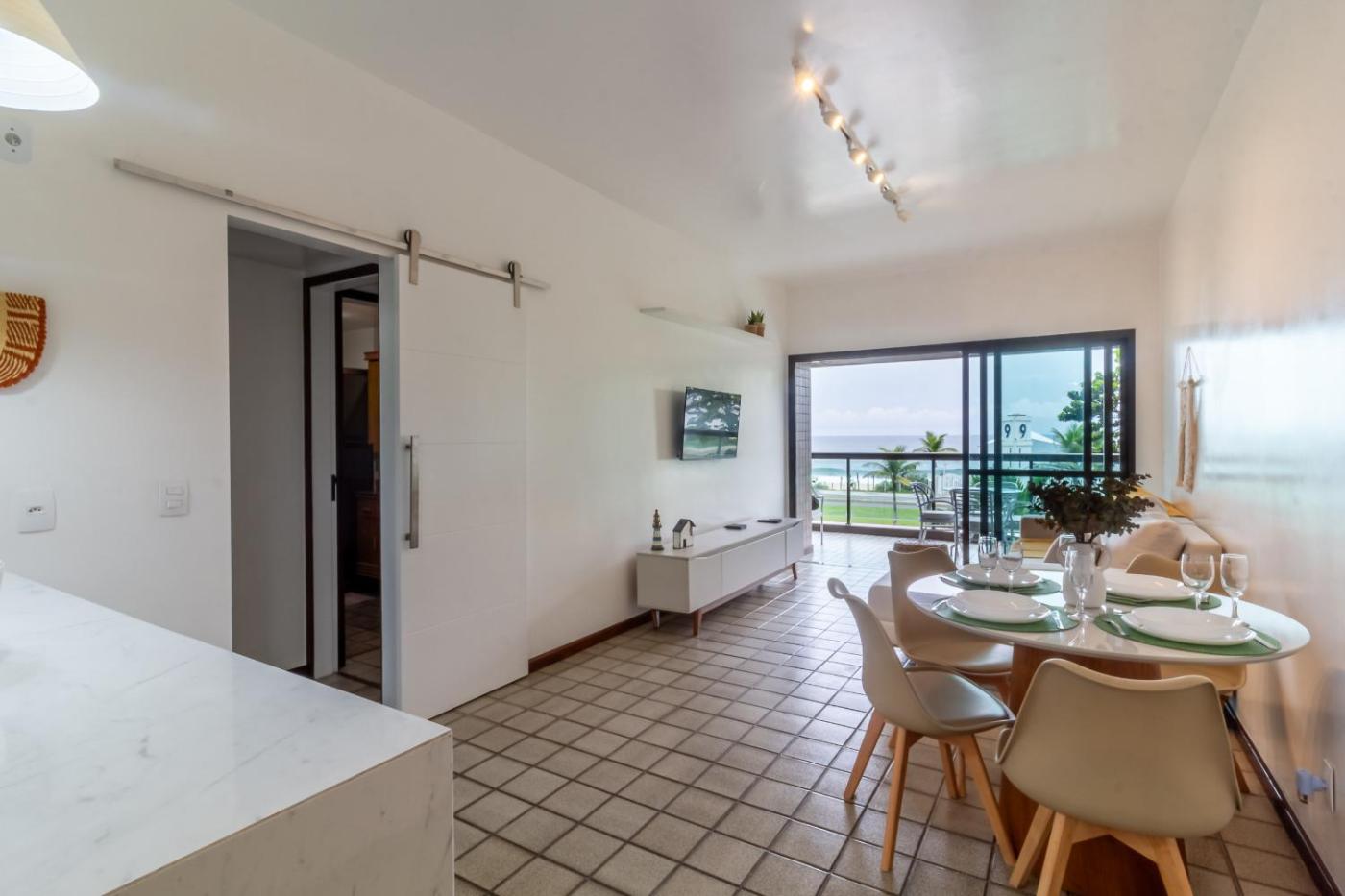 Apartamento com Vista Mar. This spacious apartment features 2 bedrooms, a kitchen and 2 bathrooms with a shower and a hairdryer. The fully equipped kitchen has a stovetop, a refrigerator, an oven and a microwave. Boasting a balcony, this apartment also features air conditioning, a washing machine and a TV. The unit has 2 beds.