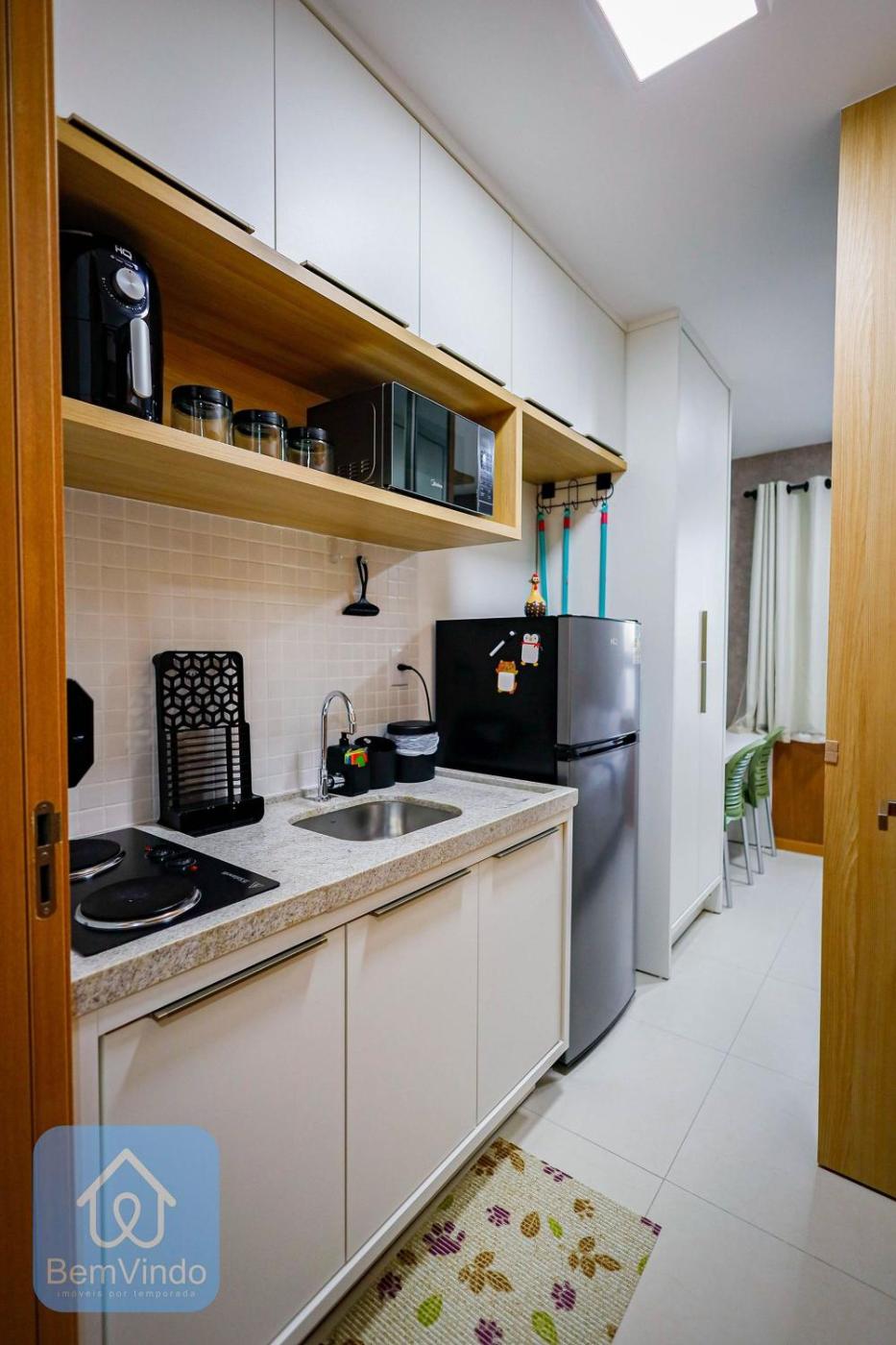 Apartamento com 1 Quarto. The air-conditioned apartment features 1 bedroom, 1 bathroom with a shower and a kitchen. Meals can be prepared in the kitchen, which is equipped with a stovetop, a refrigerator, kitchenware and a microwave. This apartment has a seating area, a wardrobe, a TV and city views. The unit offers 1 bed.
