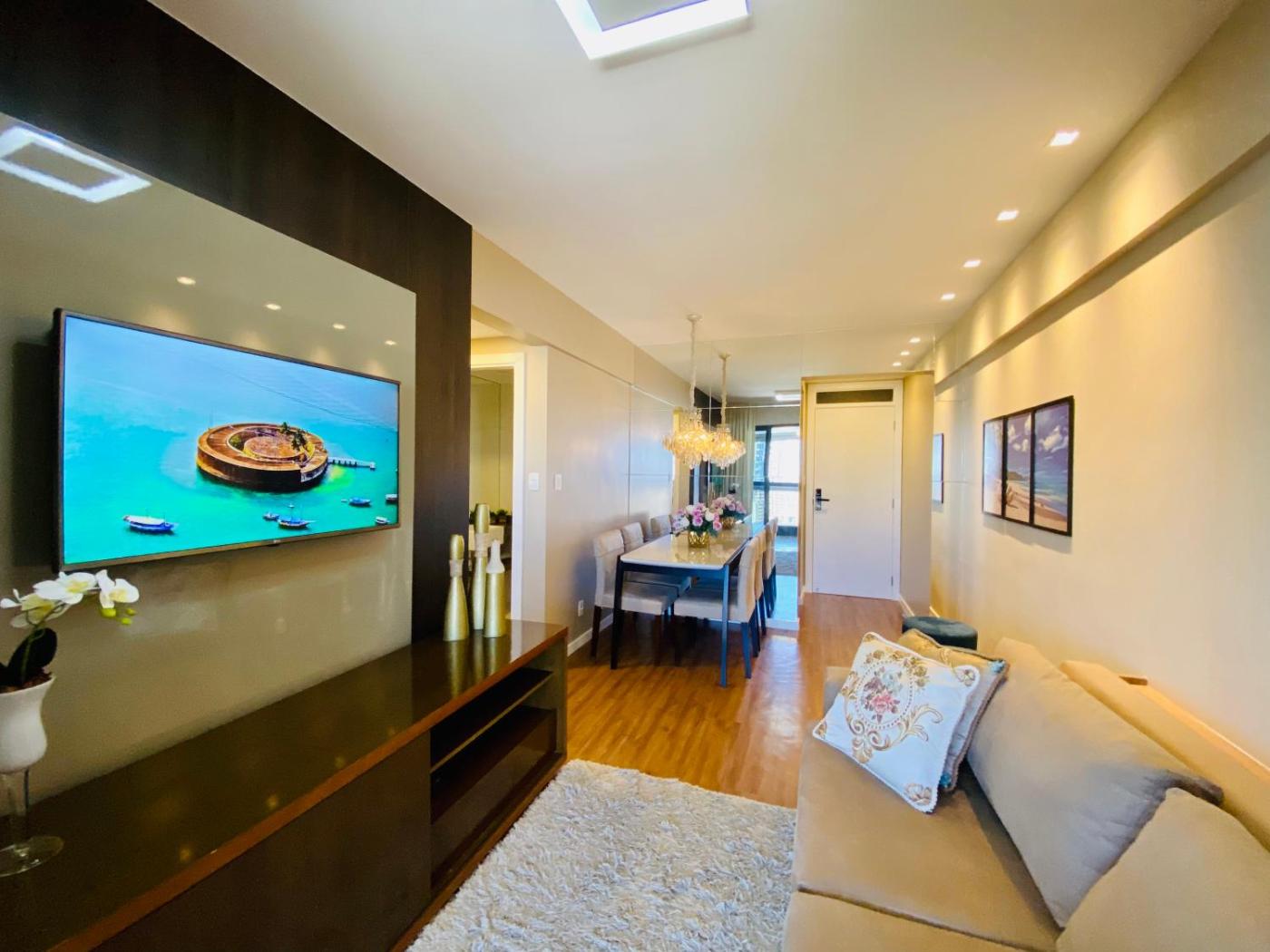 Apartamento com 2 Quartos. This spacious apartment includes 1 living room, 2 separate bedrooms and 3 bathrooms with a hairdryer and free toiletries. Guests can make meals in the kitchen that is fitted with a stovetop, a refrigerator, kitchenware and an oven. The air-conditioned apartment offers a flat-screen TV with streaming services, a washing machine, a private entrance, a tea and coffee maker as well as sea views. The unit has 3 beds.