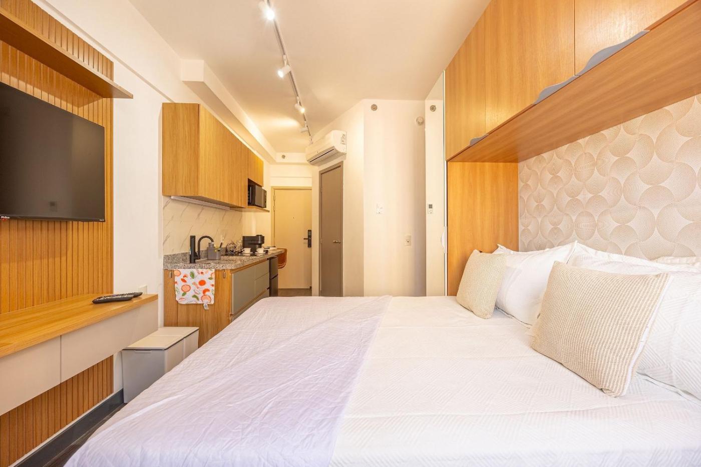 Estúdio. Meals can be prepared in the well-fitted kitchen, which features a stovetop, a refrigerator, kitchenware and a microwave. This air-conditioned studio is comprised of a flat-screen TV with cable channels and a private bathroom. The unit has 2 beds.