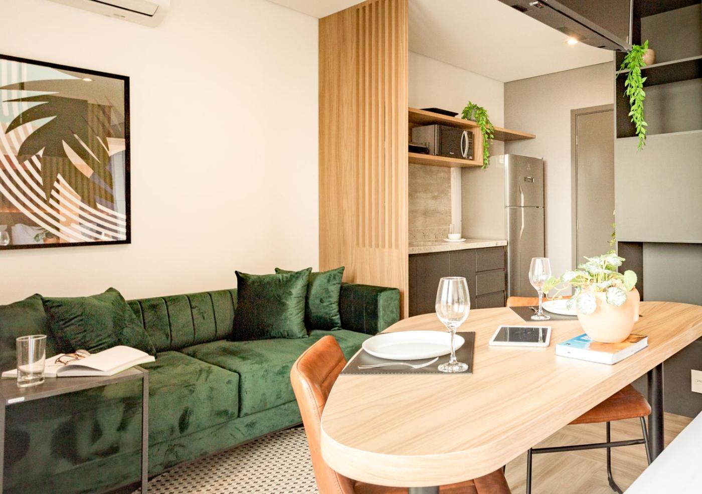 Apartamento com 1 Quarto. This apartment features 1 living room, 1 separate bedroom and 1 bathroom with a shower and free toiletries. The well-fitted kitchenette has a stovetop, a refrigerator, kitchenware and a microwave. The air-conditioned apartment features a flat-screen TV, a coffee machine, a seating area, a dining area as well as city views. The unit has 1 bed.