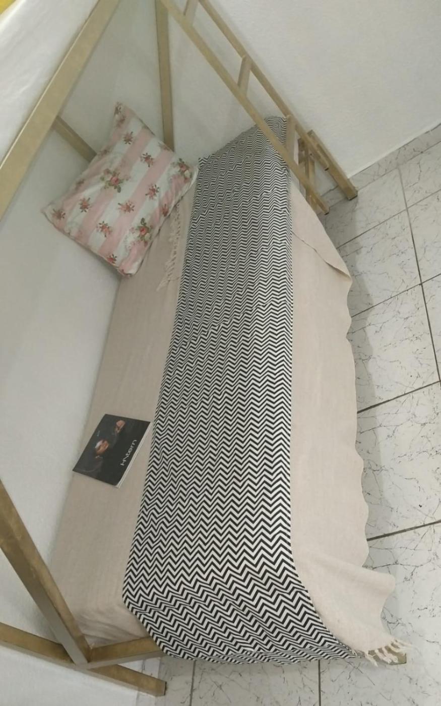 Cama em Dormitório Feminino com 4 Camas. The dormitory room provides a wardrobe and a tiled floor, as well as a private bathroom featuring a shower. The dormitory rooms kitchen, which features a stovetop and kitchenware, is available for cooking and storing food. The dormitory room has city views. The unit offers 4 beds. ;