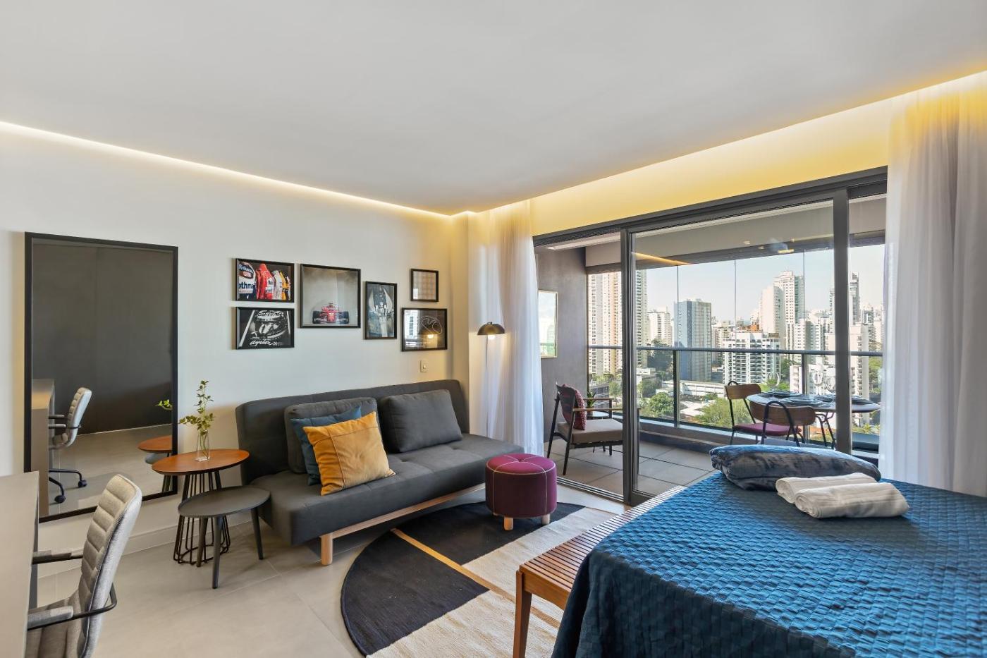Estúdio Queen Deluxe. In the fully equipped kitchen, guests will find a stovetop, a refrigerator, kitchenware and an oven. This air-conditioned studio is comprised of a flat-screen TV with streaming services, a private bathroom as well as a balcony with city views. The unit has 2 beds.