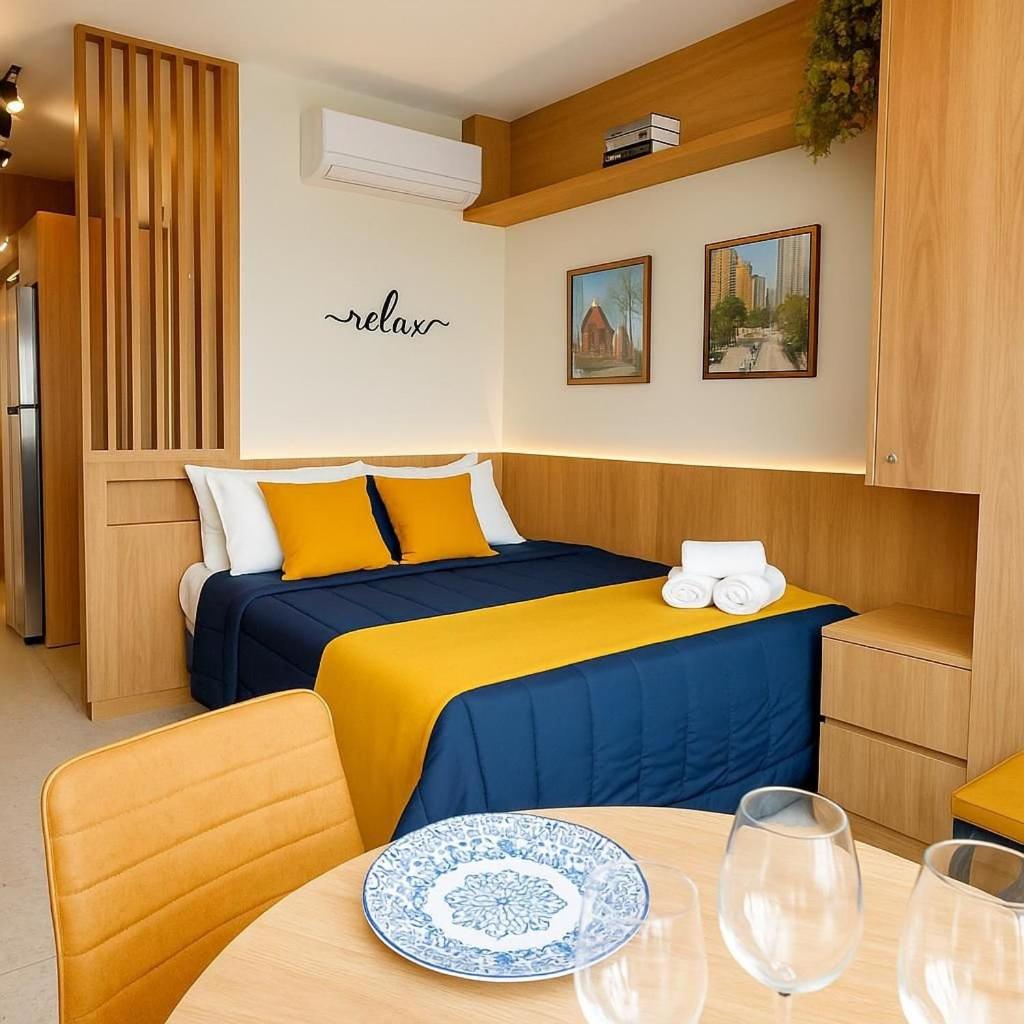 Apartamento com 1 Quarto. In the kitchen, guests will find a refrigerator, kitchenware and a microwave. This apartment features air conditioning, a wardrobe and a TV. The unit offers 1 bed and 1 futon.