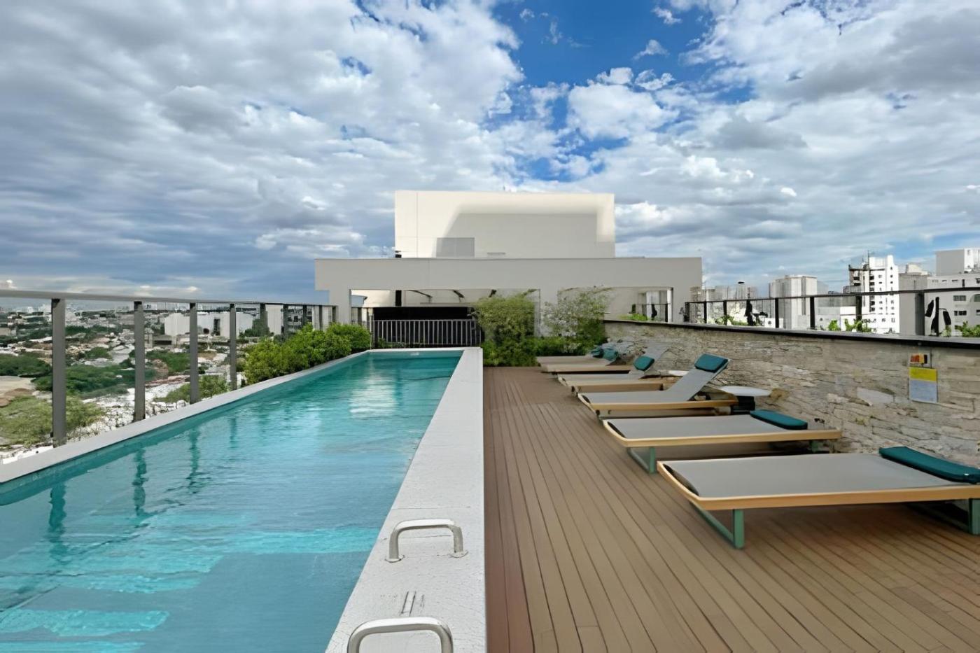 Os hóspedes de Studio Completo no Campo Belo podem usufruir de uma piscina exterior, assim como de um jardim.