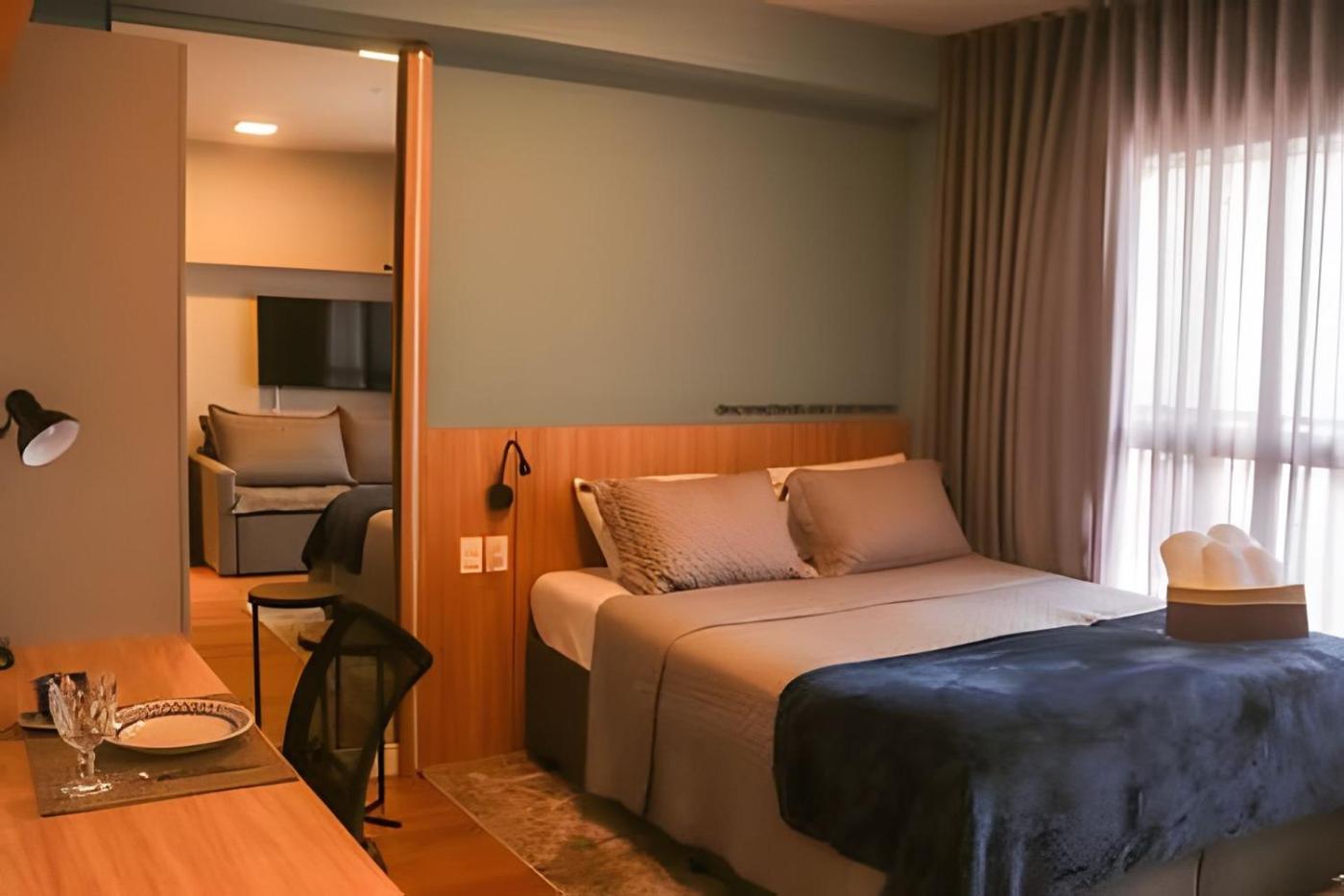 Estúdio Standard. Guests can make meals in the kitchenette that features a stovetop, a refrigerator, kitchenware and a microwave. This air-conditioned studio has a desk, a terrace, city views and a private bathroom. The unit has 2 beds.