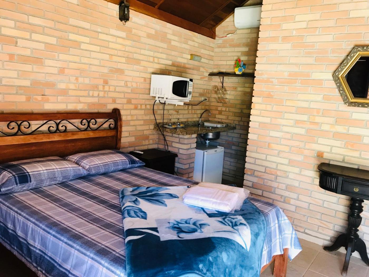 Chalé. The pool with a view and fireplace are the standout features of this chalet. The chalet has 1 bedroom and 1 bathroom with a shower and free toiletries. Boasting a terrace with garden views, this chalet also features air conditioning and a flat-screen TV. The unit has 2 beds. ;
