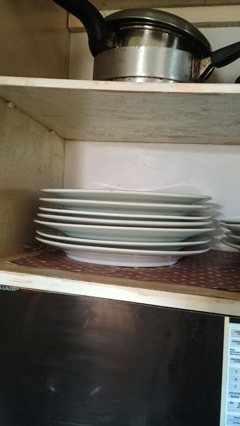 Todos os pratos, talheres, copos e outros artigos de mesa foram higienizados