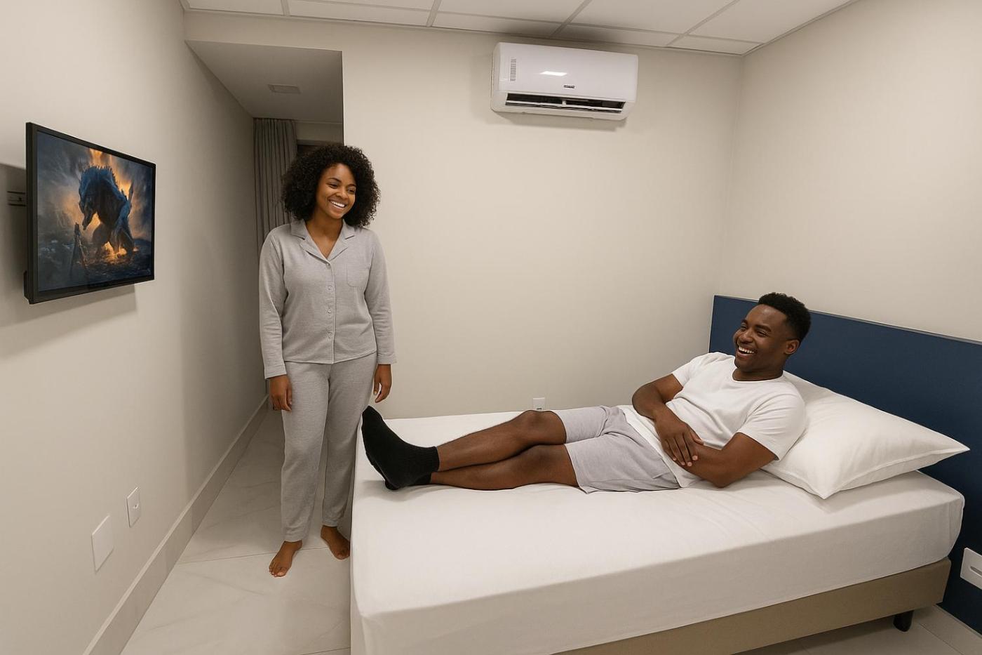 Quarto Duplo. The double room offers air conditioning, as well as a private bathroom featuring a shower. This double room features a flat-screen TV. The unit offers 2 beds.