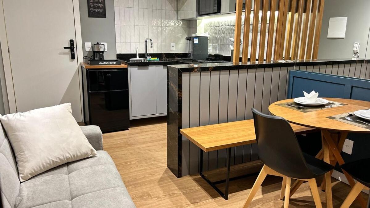 Apartamento Estúdio. This apartment comprises 1 living room, 1 separate bedroom and 1 bathroom with a shower and free toiletries. Meals can be prepared in the kitchen, which comes with a stovetop, kitchenware, a microwave and a tea and coffee maker. Featuring a balcony with city views, this apartment also provides air conditioning and a flat-screen TV. The unit offers 2 beds.