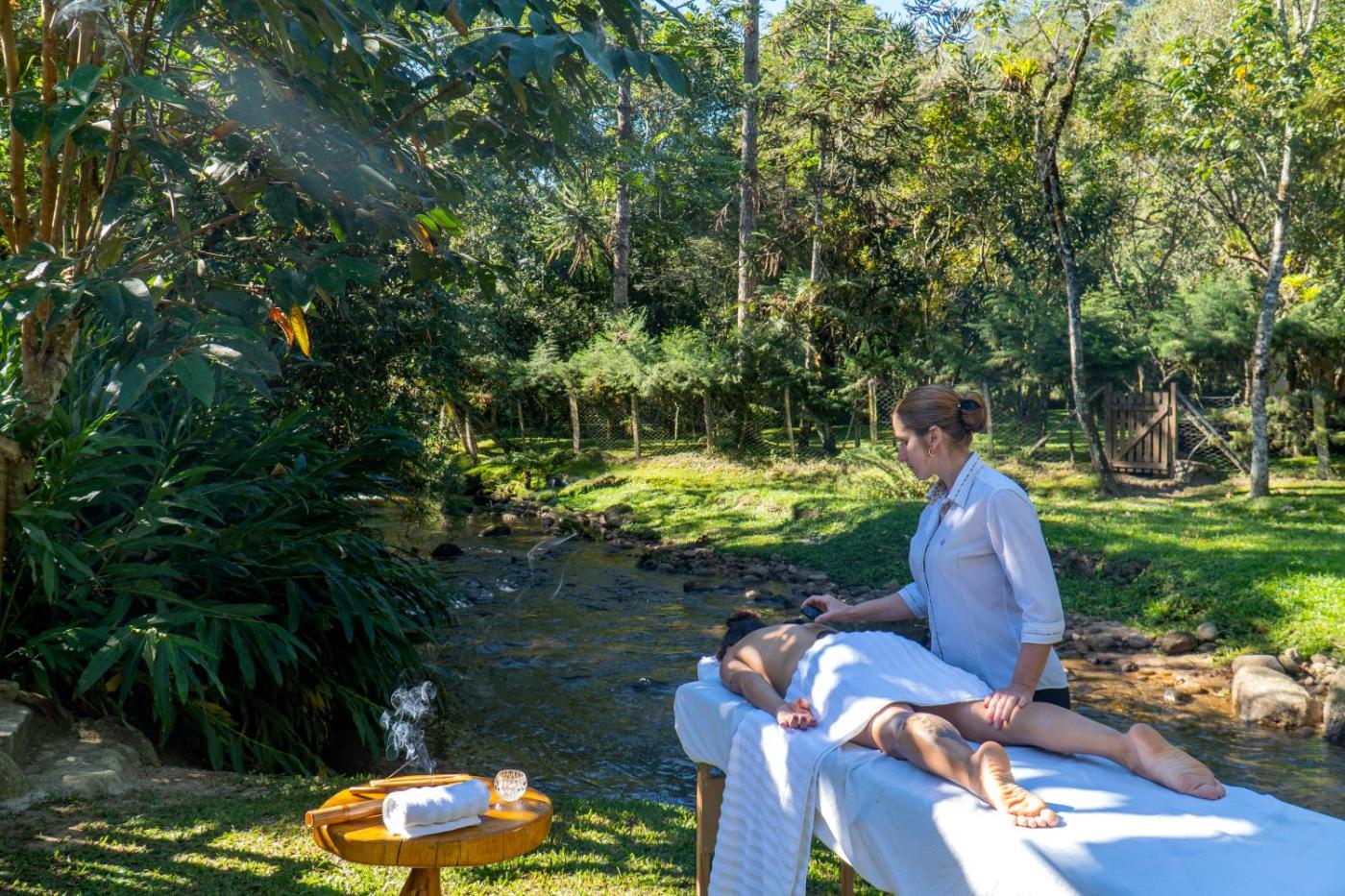 Chalé Superior. The hot tub and fireplace are the standout features of this chalet. The air-conditioned chalet has 1 bedroom and 1 bathroom with a bath and a shower. Guests will find a stovetop, kitchenware, a tea and coffee maker and a toaster in the kitchen. The chalet also includes a barbecue. This chalet features a minibar, flat-screen TV with streaming services, garden views, as well as winechampagne for guests. The unit has 1 bed. ;